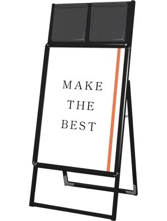 A4サイズのカタログを配布できるケースが付いた四辺開閉式のスタンド看板