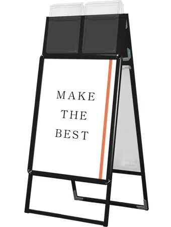 A4サイズのカタログを配布できるケースが付いた四辺開閉式のスタンド看板