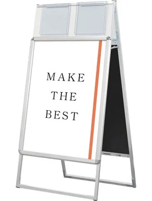 A4サイズのカタログを配布できるケースが付いた四辺開閉式のスタンド看板