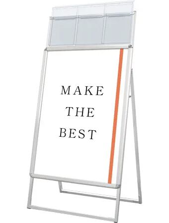 A4サイズのカタログを配布できるケースが付いた四辺開閉式のスタンド看板