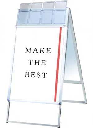 A4三つ折りパンフレットを配布できるケースが付いた四辺開閉式のスタンド看板