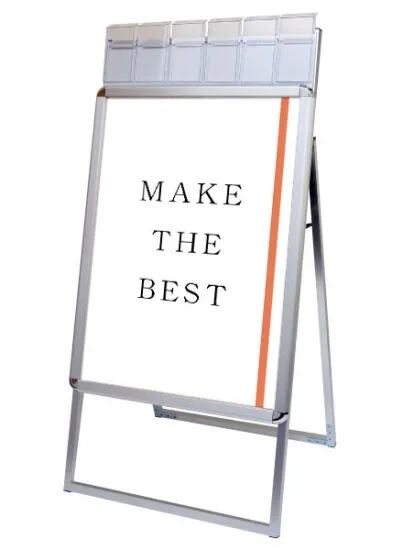 A4三つ折りパンフレットを配布できるケースが付いた四辺開閉式のスタンド看板