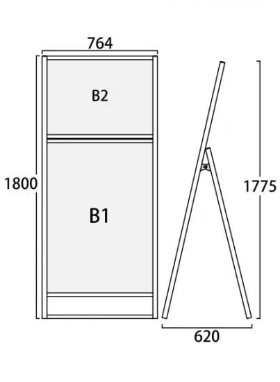 ブラックフラットオープンスタンド看板コンビB2B1片面