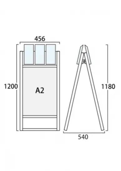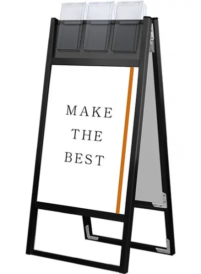 ブラックフラットオープンスタンド看板パンフレットケース付A2両面