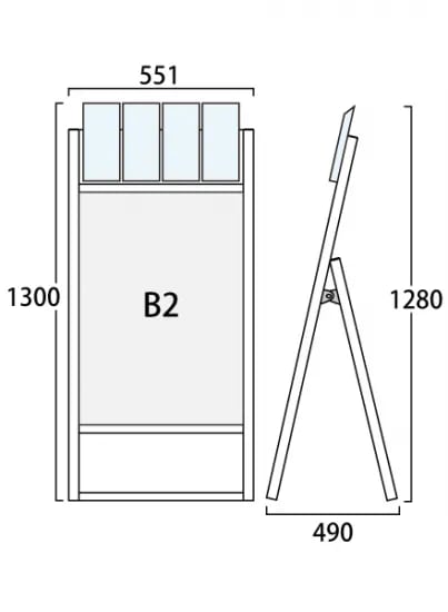 フラットオープンスタンド看板パンフレットケース付B2片面