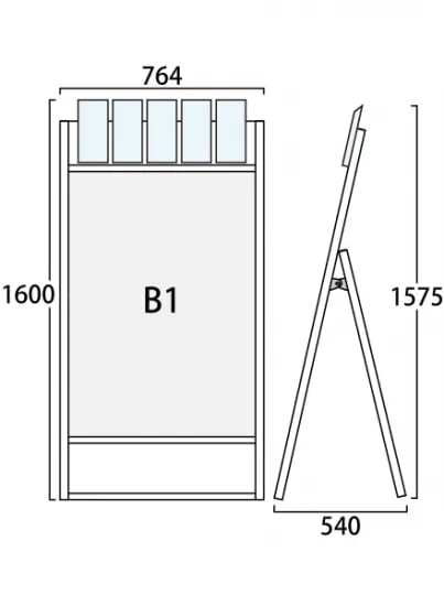 ブラックフラットオープンスタンド看板パンフレットケース付B1片面