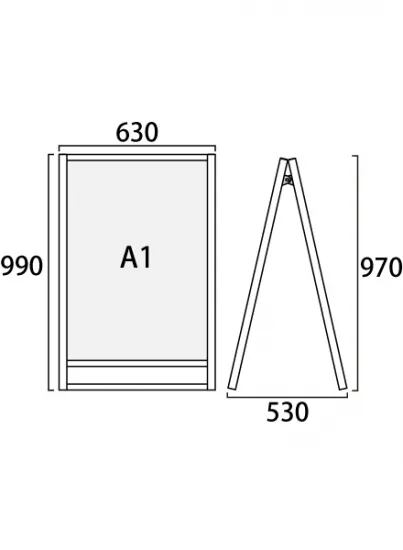 ブラックフラットオープンスタンド看板A1ロウ両面